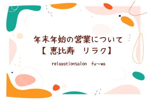 #カスタムリラク #恵比寿 #ebisu #タイ古式マッサージ #アロマオイルトリートメント #ヘッドスパ #肩こり #腰痛 #ストレッチ #メンテナンス #リモート疲れ #おなかもみほぐし #フェイシャル #クリームバス #リフレクソロジー #首コリ #雨 #頭痛 #めまい #だるさ #自律神経 #低気圧 #セルフケア #3周年 #リハビリ #オプションメニュー #調整 #癒し #チルアウト #リラックス #周年 #イベント #プレゼント