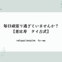 #カスタムリラク#恵比寿#ebisu#タイ古式マッサージ#アロマトリートメント#ヘッドスパ#肩こり#腰痛#おなかもみほぐし#フェイシャル#リフレクソロジー#首コリ#頭痛#ツヤ肌#リフトアップ